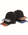 Set the world on fire with this smokin' cap. Flame detail on brim adds a touch of contrast.