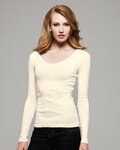 8750 Ladies' Sheer Mini Rib Long Sleeve V-Neck T-Shirt