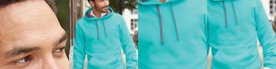 • Contrast jersey hood lining, neck tape and drawcord