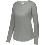 The extra soft Ladies Lux Tri-Blend Long Sleeve Shirt is a perfect balance of cotton, rayon, and polyester. Featuring a brushed peach surface, this loose-fitting long sleeve T-shirt is an easy favorite. It features a contoured bottom hem and dropped shoulder sleeves for mobility and comfort. Go beyond the basic with this luxurious tee.
