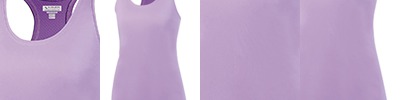 100% polyester wicking smooth knit body ; 100% polyester lightweight wicking mesh back ; Wicks moisture away from the body ; Ladies' fit ; Heat sealed label ; Self-fabric banded armhome and collar ; Racerback styling ;