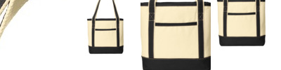 Perfect for the beach, shopping and events, these durable totes have open tops, contrast handles and contrast bottoms for classic good looks. 15.5-ounce, 100% cotton canvas body; 11-ounce, 100% cotton canvas handle trim and bottom Sturdy, reinforced webbing handles Exterior front pocket for easy decoration access Interior hanging pocket with hook and loop closure to secure valuables Dimensions: 13.25'h x 12'w x 6.25'd; Approx. 994 cubic inches Note: Bags not intended for use by children 12 and under. Includes a California Prop 65 and social responsibility hangtag.
