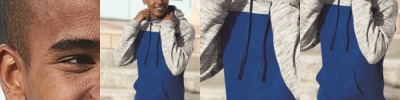 • Contrast melange fleece on hood, shoulders, and sleeves