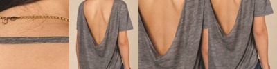 Deep scooped back sets a new trend. Layer over a cami for a fashion-forward look.