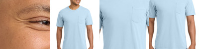 6.1-ounce, 100% US ring spun cotton Soft-washed, garment-dyed fabric Top-stitched, classic width rib collar Twill-taped neck and shoulders Twill label Left chest pocket Double-needle collar and bottom hems Relaxed fit, seamless body