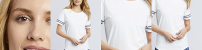 4.3-ounce, 100% combed ring spun cotton, 32 singles 90/10 combed ring spun cotton/poly, 32 singles (Heather Grey) 1x1 rib knit neck Shoulder to shoulder taping Tear-away label Side seamed Fitted