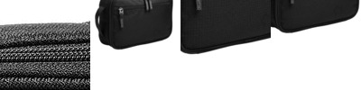 • 600D printed poly; 600D shadow ripstop poly/1,680D poly (Black/Silver)