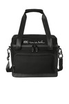 Designed to carry in your golf bag or worn as a shoulder sling, this slim cooler is a gotta-have accessory. 600D poly Durable water repellent (DWR) finish Fully insulated main compartment can hold up to six 12-ounce cans or two wine bottles Front pocket for storage and decoration Detachable shoulder strap with attached TM logoed bottle opener Padded side handle Rubberized TM logo patch Dimensions: 16'h x 6'w x 2.5'd Capacity: 320.5 cu. in./5.25 L Weight: 0.77 lbs./0.35 kg Note: Bags not intended for use by children 12 and under.