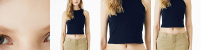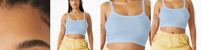 Stretch fit High neck Racerback 1x1 micro rib Side seamed Mid-length Tear-away label 5.4-ounce, 52/48 Airlume combed and ring spun cotton/polyester, 32 singles Athletic Heather: 90/10 Airlume combed and ring spun cotton/polyester