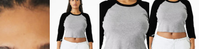 Stretch fit Crewneck binding Set-in cap sleeve 1x1 micro rib Side seamed Mid-length Tear-away label 5.4-ounce, 52/48 Airlume combed and ring spun cotton/polyester, 32 singles Athletic Heather/Black: 90/10 Airlume combed and ring spun cotton/polyester