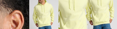 10-ounce, 80/20 combed ring spun cotton/recycled polyester fleece 75/25 cotton/polyester (Heather Gray) 100% cotton face Shoulder to shoulder binding Tear-away label Halfmoon at back neck Hoodie with no drawcords 1x1 rib knit collar Dropped shoulders Front pouch pocket Side seamed 2x2 rib knit cuffs and hem Oversized fit