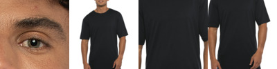 Modern fit Side seamed Tear-away label 4.2-ounce, 52/48 Airlume combed and ring spun cotton/polyester, 32 singles Athletic Heather and Black Heather: 90/10 Airlume combed and ring spun cotton/polyester