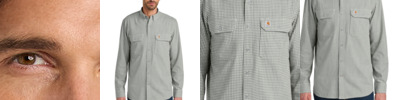 Proof that durability and flexibility can go hand in hand, this shirt easily transitions from work to weekend. Plus, it looks great tucked or untucked. 4-ounce, 98/2 cotton/elastane Rugged Flex ® stretch technology for ease of movement Garment washed for a soft finish and reduced shrinkage Spread collar Two chest pockets Two-button adjustable cuffs Carhartt label sewn on left chest pocket Relaxed fit