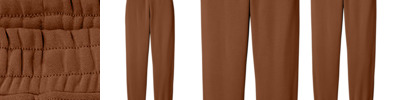 - Coverstitched neck, shoulders, armholes, cuffs and bottom band