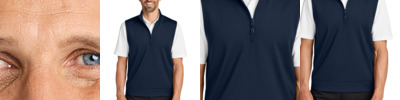 Created with an earth-first attitude, this midweight 1/4-zip vest will stand out in any work or leisure wardrobe. Not only is it easy-to-wear and layerable, but it also boasts superior stretch, snag-resistance, moisture-wicking and UV ray-resistant performance. 7.7-ounce, 89% recycled polyester/11% spandex interlock knit 7.7-ounce, 81% recycled polyester/8% polyester/11% spandex interlock knit (Grey Steel Heather) This product's carbon footprint has been measured and reduced through a combination of preferred materials and investing in carbon offset projects through the ClimeCo Certified Product Program Snag-resistant Moisture-wicking UPF rating of 50+ Self-piped zipper placket Dyed-to-match, recycled, reverse coil zipper with silicone-tipped drawcord pull Self-fabric faced armholes Self-banded hem Tag-free label