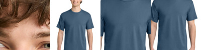 5.6-ounce, 100% carded ring spun cotton, 24 singles 90/10 carded ring spun cotton/polyester (Heather Gray) 1x1 rib knit neck Shoulder to shoulder taping Side seamed (4XL only) Tubular Tear-away label Regular fit