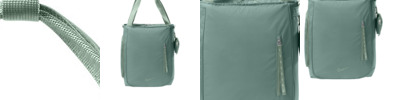 Balancing fashion, function and flexibility, this versatile tote can be carried across your body or over the shoulders. 400D, 100% nylon body and liner Two-way zipper secured main compartment Expandable gusseted side pocket for water bottles Includes detachable mini bag Front zipper pocket with elongated pull Zippered plush-lined top pocket for tech and valuables protection Contrast embroidered Swoosh logo at bottom Laptop compartment fits most 15' laptops Dimensions: 16'h x 12'w x 6'd Capacity: 20 L Note: Bags not intended for use by children 12 and under.