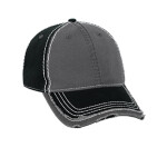 Cotton/polyester front panels and visor with nylon mesh back panels; Pro-Crown shape with buckram-fused front panels and ProStitching; Screen Printed Charcoal/White Plaid Pattern; Pre-curved PE visor with eight rows of stitching.