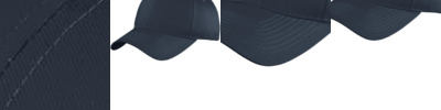 Structured poly-spandex fabric with buckram fused front panels; Color blocked crown and visor inserts. Pre-curved PE visor.