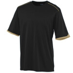 100% polyester wicking smooth knit * Odor resistant * Wicks moisture away from the body * Heat sealed label * Self-fabric collar * Topstitched shoulder seams * Set-in sleeves * Contrast color piping on shoulder * Contrast color insert at sleeve hem * Double-needle hemmed bottom